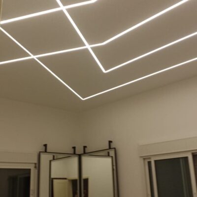 Multi-level bulkheads with concealed LED, flush mounted LED trims to clients’ shape requirements, raked ceilings, square setting, and skylight finishing.