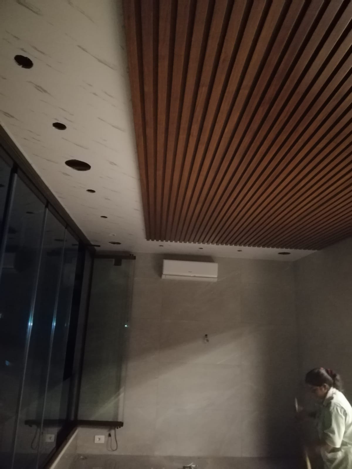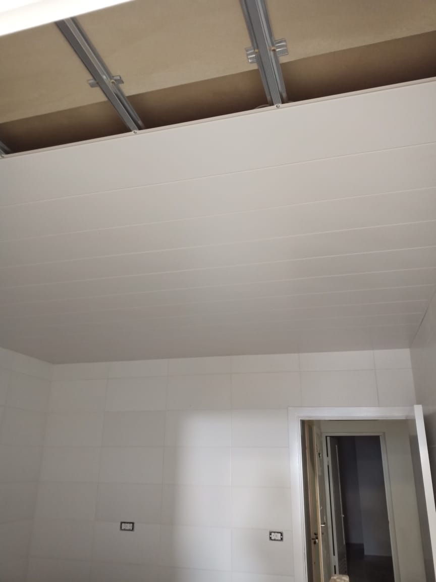 Installation of ceiling PVC panels are typically mounted onto steel furring channels to adjust for height variance and service clearance, we affix cornice trims to watertight standards. We can provide options or customer can supply.